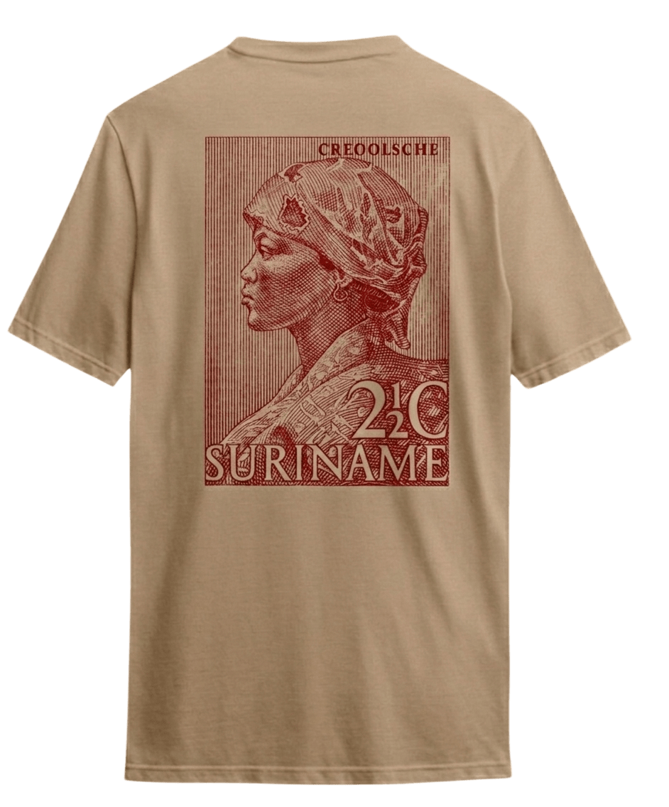 ​Draag een meesterwerk uit de Surinaamse geschiedenis. Dit ontwerp is gebaseerd op de iconische postzegelserie van 1948; het moment waarop de lokale bevolking voor het eerst zelf het gezicht werd van het land.